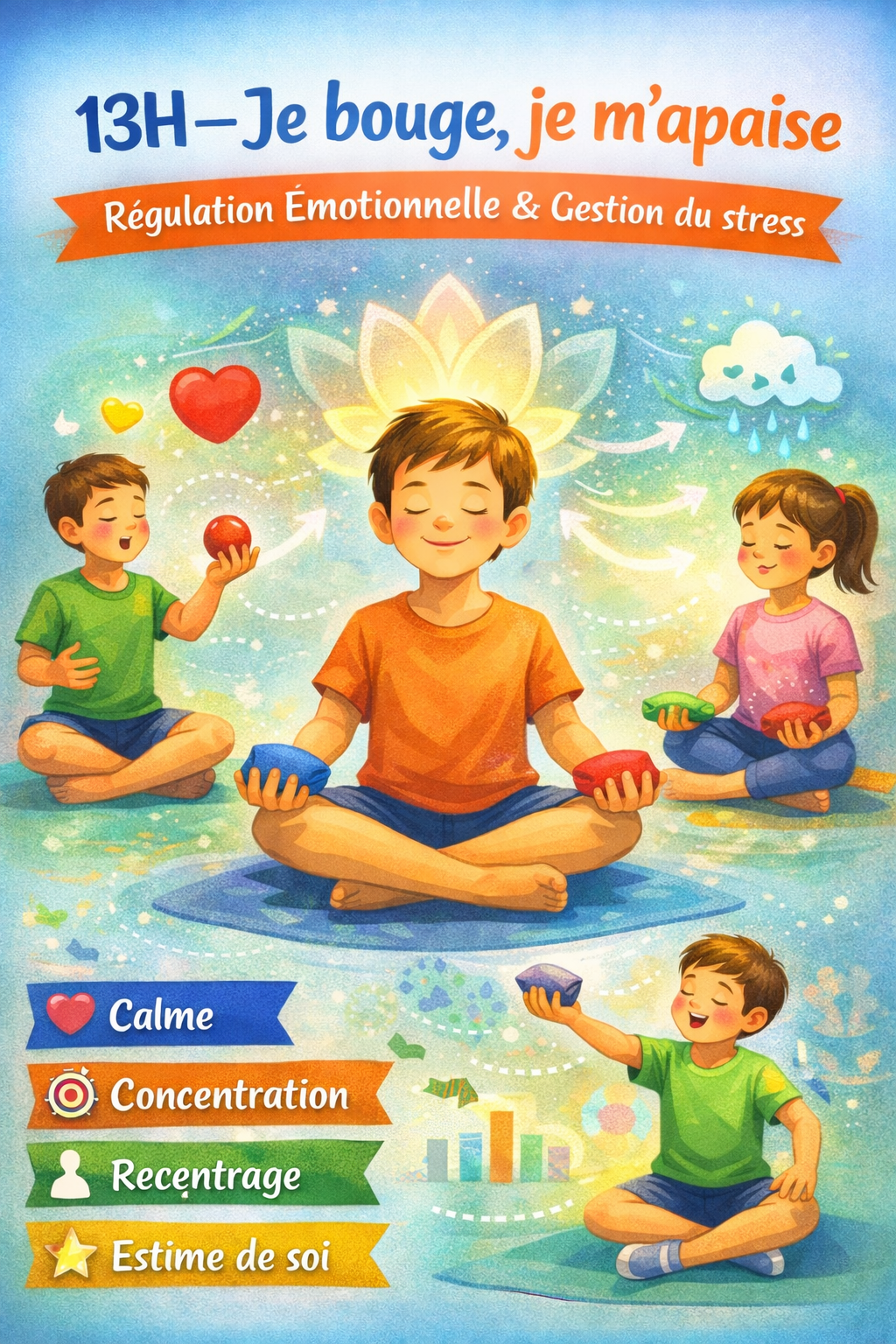 Thème : régulation émotionnelle & gestion du stress Un atelier conçu pour les enfants qui ont besoin de se canaliser, se poser et mieux gérer leurs émotions.Grâce aux balles et sacs de grains, les exercices rythmés permettent à l’enfant de relâcher les tensions, de retrouver son centre et de développer son calme intérieur. Objectifs : Diminuer l’agitation et l’impulsivité Apprendre à se recentrer par le mouvement Développer la conscience du corps et du souffle Retrouver une sensation de sécurité et de stabilité Favoriser l’estime de soi par la réussite progressive 👉 Idéal pour enfants sensibles, anxieux, très actifs ou ayant besoin d’un sas de décompression.